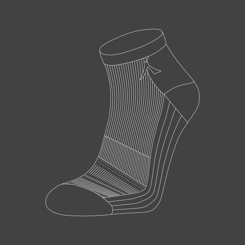 Kanso Pro sock brings comfort with extra cushioning under the heel and forefoot in strategic areas and a supportive v-heel and ankle stitching.